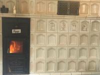 - Der Kamin im Wohnzimmer hat einen Aschenfall, der