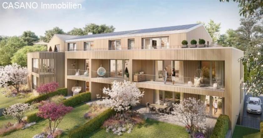 An diesem schönen und grünen Ort entsteht ein ganz besonderer Neubau mit insgesamt 14 Eigentumswohnungen. Über zwei Vollgeschosse und ein Staffelgeschoss erstreckt sich der Neubau mit einer besonderen Fassade aus profilierter und hinterlüfteter Holzverschalung. Eine weitere Besonderheit stellen die Holz-Aluminiumfenster dar, denn diese sind nach außen in langlebigem Aluminium ausgeführt und vermitteln nach innen ein angenehmes und natürliches Wohngefühl. Die offenen Wohn-/Essbereiche werden durch großzügige Loggien und (Dach)-Terrassen nach außen erweitert und durch überwiegend bodentiefe Fenster gut belichtet. Einige der Erdgeschosswohnungen erhalten einen eigenen Gartenbereich zur alleinigen Nutzung. Ein Aufzug bringt Sie bequem und barrierearm aus der Tiefgarage in Ihre Wohnetage.