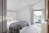 Vom Eingang aus rechts befinden sich drei weitere Räume, einer davon mit integriertem Kleiderschrank und Loggia nach Süden. An der Loggia ist ein weiterer Abstellraum.