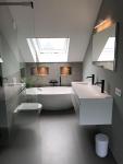 Es gibt zwei Badezimmer, ein kleineres Duschbad und ein großes Vollbad, beide mit Fenster. Im Vollbad ist der Waschmaschinenanschluss und Platz für zwei Wäscheständer.