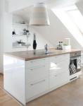 Betritt man die Wohnung kommt man linker Hand in einen ca. 60 qm großen, lichtdurchfluteten Wohnraum, der über eine offene Küche, eine Loggia (nach Süden), einen Kaminofen und ein großes Podest mit Beamer und Leinwand verfügt. Das Podest ist mit Telefon-und LAN-, Strom- und Lautsprecheranschlüssen ausgestattet. Unter dem Podest sind zwei ausziehbare 80x200 cm- Schubladen, nutzbar als Gästebetten oder Stauraum.